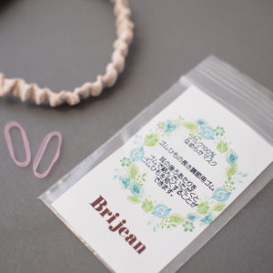 だから、誰でも簡単にゴム紐の長さを調整出来る様に、「長さ調節用ゴム」を付属しています。