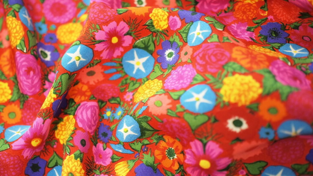 単に 派手 なだけではない、ケン・スコットのテキスタイルの特徴である 鮮やかな花々を、地球全体が求めているかの様に感じます。
