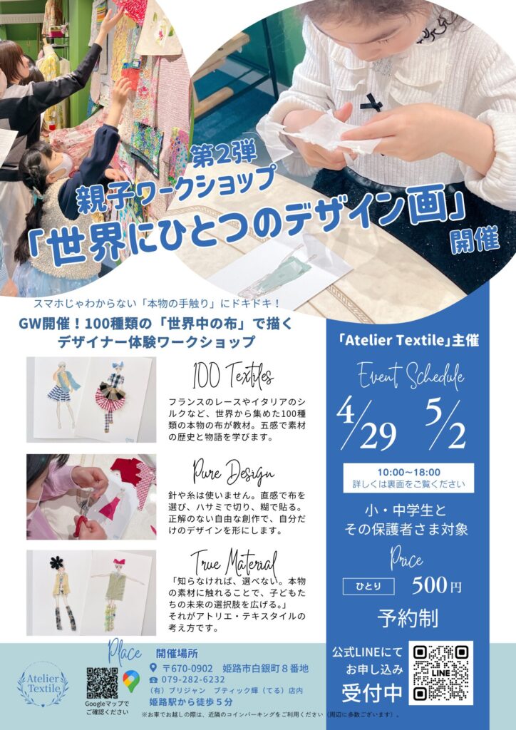 このたび、GWに開催した親子ワークショップ「世界にひとつのデザイン画」の参加作品を店内に展示中です。