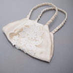 ヌードベージュのシルク100%のサテンの上に、イタリア製のレースを重ねてお作りした、高級感あふれる美しいマスクです。