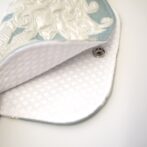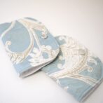 表は、表面に凹凸と、シルバーに輝くアラベスク模様が美しい生地を使用しています。